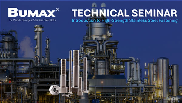 Join us for our FREE webinar on Wednesday, 26 November at 3pm! This webinar will be looking at the basic conditions of stainless steel bolting. How BUMAX® high strength stainless steel fasteners compared with generic stainless steel fasteners and an overview of BUMAX's unique manufacturing capabilities and product range.